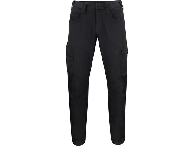 Skön servicebyxa med många smarta detaljer för dig som arbetar med till exempel service och bemanning Byxan är repfri eftersom alla detaljer, som knappar och blixtlås är dolda. Slitstark och med många detaljer som knäfickor, sidficka med tumstocksficka, ficka för dokument och pennor på höger ben. På vänster ben en sidficka med lock. Bra passform är en självklarhet, kan tvättas i 85°. Perfekt för t ex service, fastighet, städ, bemanning, hemvård. - Material: 65% polyester, 35% bomull - Vikt: 245g/m2 - Oeko-Tex Standard 100