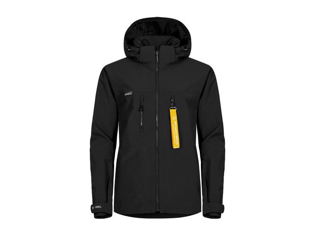 Damjacka i återvunnen polyester med ett mjuk och smidigt stretch yttertyg. Vind och vattentät med tejpade sömmar PFC fri ytbehandling med Bionic Eco. Två sidfickor och två bröstfickor samt justerbaravtagbar huva. - Material: 100% GRS certifierad återvunnen polyester - Vikt: 150 g/m2 - Storlekar: 34-46 - Passform: dam - Färg: svart - Andningsförmåga: 8000 g/m2/24h - Vattenresistens: 10 000 mm BIONIC - Oeko-Tex Standard 100 - Tvätt: 40 grader