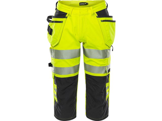 Produktbeskrivning:Hantverksshorts med varseltyg. Helt i 4-vägsstretch. Piratbyxa i 4-vägsstretch med avtagbara spikfickor. Varselbyxor av delvis biobaserat och återvunnet material med stretchpaneler i midjan för extra hög komfort. Byxan är delvis tillverkad av återvunnet och biobaserat material. Spikfickorna är avtagbara med en dold dragkedja. Knäskydden i knäfickorna kan höjdjusteras. - Varumärke: FRISTADS - Material: 4-vägsstretch 44% PTT (delvis biobaserat material), 44% polyester, 12% återvunnen polyester - Vikt: 260 g/m² - Godkänd enligt: EN 14404 - Knäskydd, EN ISO 20471 - Varsel, hög synbarhet - Skyddsklass: 2 - Oeko-Tex Standard 100: Ö 97-055 RISE www.oeko-tex.com - Tvätt: 60 grader
