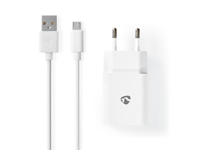 Produktbeskrivning:Ladda surfplattor, smartphones, navigeringssystem, digitalkameror och många andra USB-enheter med Nedis® USB-väggladdare där en USB-C-kabel ingår. Med USB-laddaren kan du ladda enheter utan en stationär eller en bärbar dator. Den omvandlar spänning från 100 till 240 VAC till 5 VDC och är mycket praktisk på kontoret, i hemmet eller under resor. - 2.1 A - Snabbladdande - Micro-USB-kabel ingår, 1 meter