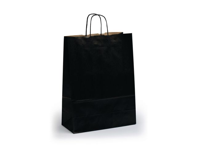 Högkvalitativ papperskasse med handtag av tvinnat papper och förstärkt botten. - Mått: 19x8x21cm - Färg: Svart