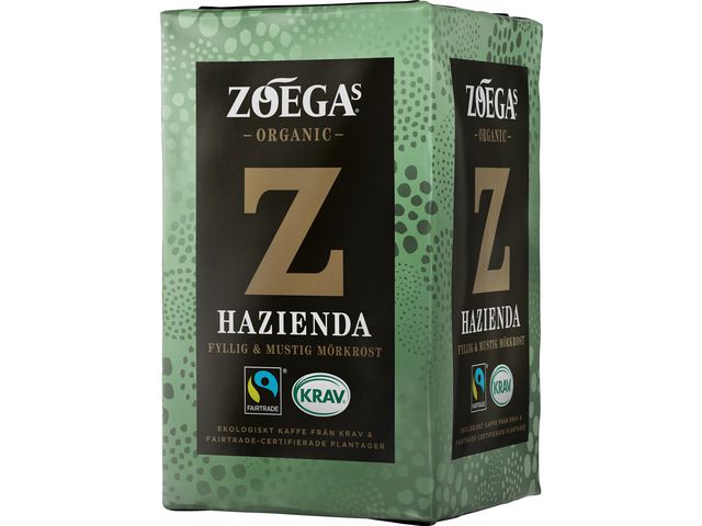 Ekologiskt kaffe från Zoega med en välbalanserad fyllighet med friska inslag. Zoegas Hazienda är ett mörkrostat malt kaffe med en frisk och välbalanserad fyllighet.