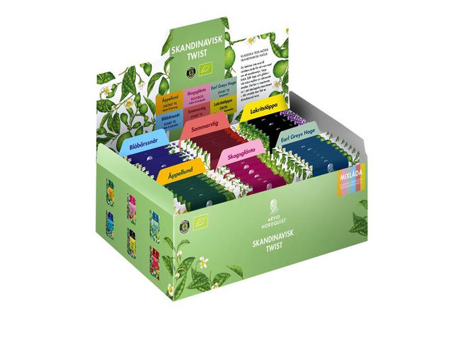 Mixlåda som passar utmärkt på arbetsplatsen! 6 x 15 st påsar i varje mixlåda. En skandinavisk twist på utvalda frukter, bär och kryddor! Te med hög kvalité i ett ekologiskt helhetskoncept med svart-, grönt, rött- och ört-te.