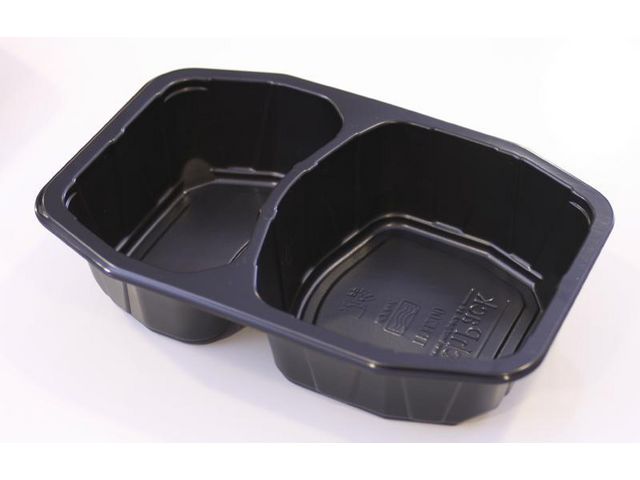 Portionsform TechPack HMR, 1-fack i svart mineralfylld PP, passar för varm och kyld mat - Mått: 215x148x50 mm - Volym: 600+400 ml