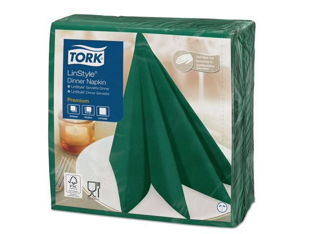 Produktbeskrivning:Vackra pappersservetter med en underbar linnekänsla som ger ett elegant intryck! Både ser ut och känns som textil och är märkbart mjukare och tjockare än vanliga pappersservetter. Skapa en fin dukning med dessa servetter ifrån Tork LinStyle, här i en klassisk grön färg. Servetter ifrån TORK Linstyle är papperservetter i hög kvalité och en känsla av linneduk. De är hållbara, extra absorberande och mjuka. - Spara tvättkostnader med hjälp av pappersservetter i hög kvalitet! - Färg: Grön - Antal: 50