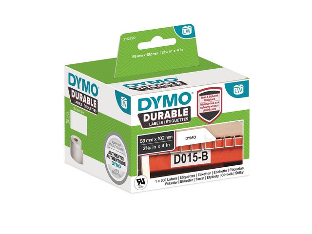 Produktbeskrivning:När du konfronteras med utmanande ytor, använd etiketter som är starkare och håller längre än pappersetiketter. Dymo Durable shipping label för LabelWriter, 59x102mm, 300 etiketter, extra starkt lim, vit. Dymo LabelWriter Durable labels har industri-graderat lim och en tuffare yta som motstår upprivningar och avskavningar som uppstår vid värme, fukt och lösningar. Dymos LabelWriter Durable Labels är perfekta för hyllor, golvmarkeringar, lagring av kemiska vätskor och mer. - 59x102mm - Extra starkt lim - Fukttålande etiketter som fungerar i temperaturer från -18°C - +50°C - Kan användas med Dymo LabelWriter 450/450 Turbo och LabelWriter 450 Twin Turbo