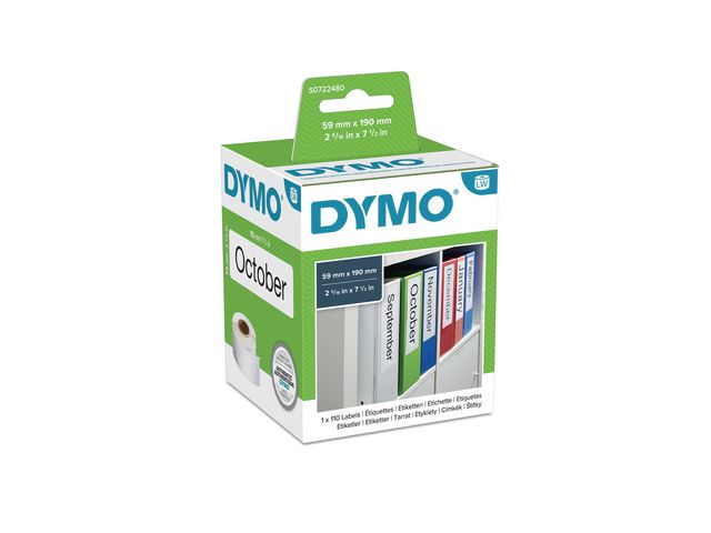 Produktbeskrivning:De stora Dymo LabelWriter¿-LAF-etiketterna har en icke-permanent självhäftande baksida som enkelt kan avlägsnas från underlaget. De stora DYMO® LabelWriter?-etiketterna av LAF-typ ger snygga, anpassade etiketter i större storlek, 190 x 59 mm. De är perfekta för långa adresser, filhantering och för att organisera hemma och på kontoret. LabelWriter?-etiketter ger högkvalitativa utskrifter med maximala prestanda. Etiketterna lossnar lätt utan att lämna rester och kan skrivas ut en i taget vid behov för att skapa mindre avfall och undvika trassel. Tack vare termisk överföringsteknik behövs varken bläck eller toner vid utskrift. Varje rulle innehåller 110 etiketter, vilket ger en kostnadseffektiv lösning för dina märkningsbehov. - |Kompatibla med: DYMO LabelWriter 300, 320, 330, 330 Turbo, 400, 400 Duo, 400 Turbo, 400 Twin Turbo, 450, 450 Duo, 450 Turbo, 450 Twin Turbo, 4XL - Arkivpärmsetiketter av universaltyp - För post, kuvert och pärmar - Ickepermanent etikett - Lämnar inga limrester - Med direkt termisk utskriftsteknik - En rulle med 110 etiketter - Etikettstorlek: 190 x 59 mm (L x B) - Färg: Vit