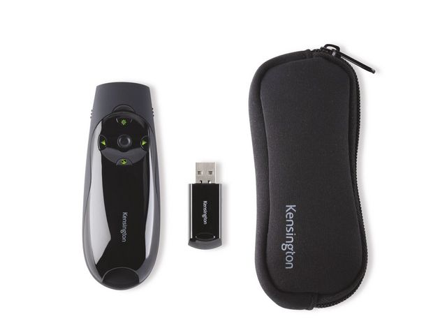 Produktbeskrivning:Laserpekare med en klar grön laser lämplig även för de största lokalerna och på de klaraste skärmar. Den gröna lasern är 10 gånger klarare än en standard röd laser. Presentatörens innovativa fyra-knappars design gör det enkelt att navigera i dina Keynote® eller PowerPoint® presentationer. En snabb justering på en knapp ger dig full kontroll på markören. 2,4 GHz mottagaren lagras inuti presentatören så du behöver inte oroa dig för att tappa bort den. Upplysta knappar gör att du enkelt ser dom i mörker. USB plug & play. Fungerar både för PC och Mac. Skyddsfodral, drivs med 2xAAA batterier som medföljer. Räckvidd upp till 50 meter. Laserklass II. 2 års garanti.