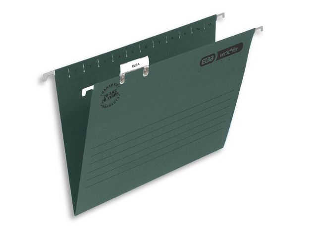 Produktbeskrivning:Arkivera viktiga dokument för snabb åtkomst i denna hängmapp, som har ett förtryckt omslag för information. Skydda dokumenten och arkivera säkert i skåp med denna Elba hängmapp, som är tillverkad av 100 % ren pappersmassa förstärkt med långa och extra starka bomullsfibrer från Canson. Metallhängare flyttas enkelt längs hängskenor. Ett förtryckt omslag gör det enkelt att spåra och hämta ut flera dokument som ska användas. - Arkivera dokument och mappar säkert - Metallhängare - Förtryckt omslag för märkning av innehållet - Färg: Grön - Bredd: 330 mm - Format: A4 - Material: Kartong, 240 g - Botten: V-botten