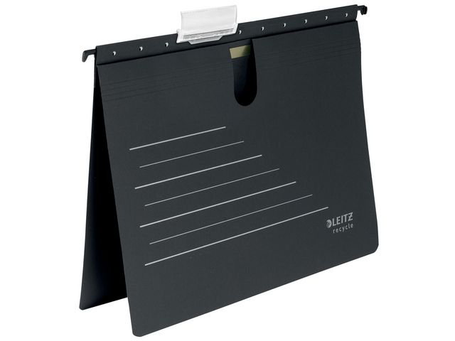Produktbeskrivning:100% återvunnen kartong, klimatkompenserad och 100% återvinningsbar. Blue Angel miljöcertifierad. Iögonfallande hängmapp av högsta kvalitet med V-botten som passar A4. Maximera lagringsutrymmet med vertikal arkivering för att hålla papper snyggt och tillgängligt. De starka hållbara skenorna tål tung användning och den medföljande etiketthållaren hjälper till att organisera och identifiera innehåll. Denna robusta hängmapp kompletterar perfekt andra produkter från Leitz Recycle-sortimentet och är gjord för att hålla. Med det nya återvinningsprogrammet från Leitz kan du både förbättra din kontorsmiljö - och miljön på vår planet. - Färg: Svart - Storlek: Storlek: A4 (31,5 x 24,1 cm) - Material: 100% återvunnen kartong - Botten: V-botten