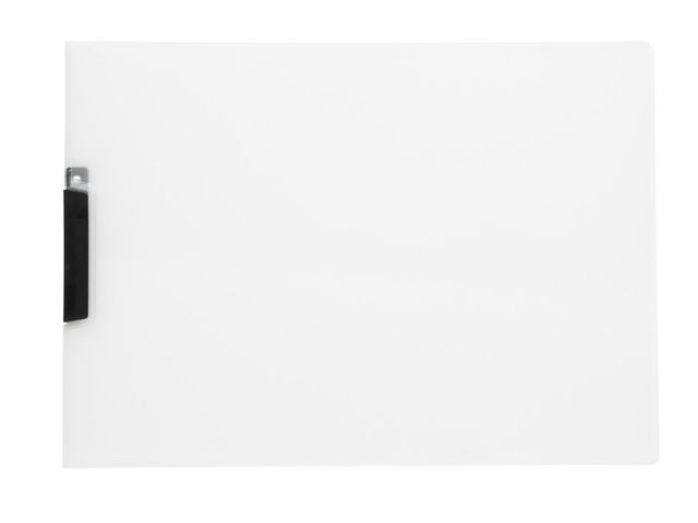 Mappen har en metallklämma i ryggen som håller fast dina papper så att du inte behöver håla dem. Mappen rymmer papper i liggande A3-format och är tillverkad av 0,7 mm PP-plast.