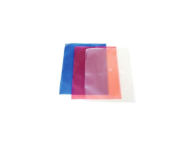 Kuvertmapp i A4-format. Transparent polypropylen med kardborrelås. A4, blå.