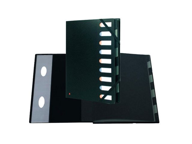 Produktbeskrivning:Sorteringsmappen Harmonika® Exactive® ger dig möjlighet att enkelt arkivera många dokument på ett strukturerat sätt. Sorteringsmappen Exacompta Harmonika® Exactive® med 9 fack och en utdragbar rygg erbjuder generöst lagringsutrymme på 450 ark A4-papper. Den här mappen har utskurna fönster på framsidan för enkel indexering och flikavdelare för kategorisering av innehållet. Den har dessutom 2 gummiband gör att mappen stängs ordentligt. Det finns också 2 fickor på insidan med skåror för förvaring av exempelvis CD-skivor och visitkort. Den här eleganta sorteringsmappens omslag är tillverkat av innovativ 80 % återvunnen polypropylen, medan kartong om 225 g/m² används för invändiga material. Det högkvalitativa materialet gör den här praktiska sorteringsmappen till en tålig, lätt och miljövänligare lösning för dina arkiveringsbehov. - Förvaringskapacitet: Rymmer 450 A4-papper - 9 fack med en utdragbar rygg för arkivering med hög kapacitet - Utskurna fönster på framsidan för indexering - Flikavdelare för kategorisering av innehåll - Två fickor för cd-skivor och visitkort - 2 elastiska gummiband för säker förslutning - Tåliga, lätta och miljövänligare - Material: 80 % återvunnen polypropylen och inre kartong om 225 g/m² - Mått: 240 x 320 mm - Färg: Svart