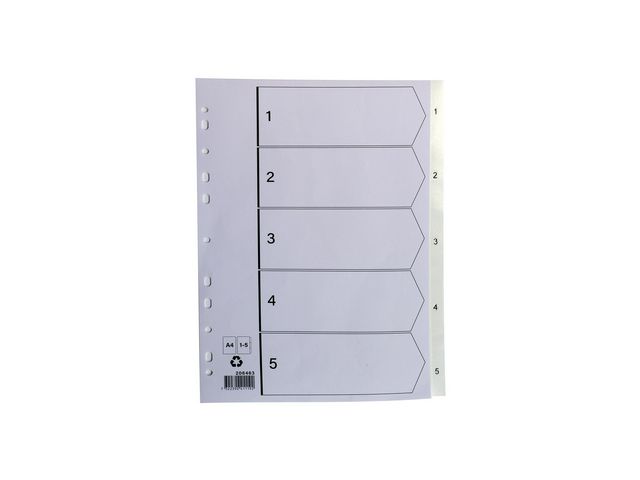 Produktbeskrivning:Organisera dina mappar med dessa universellt perforerade, förtryckta avdelarsidor som är tillverkade av hållbar plast. Dessa förtryckta avdelare är användarvänliga, stabila och ger enkel indexering och identifiering av innehållet i dina anteckningsböcker, pärmar och mappar. Avdelarna har utformats med förtryckta etiketter så att du snabbt kan identifiera och öppna materialet i alla avsnitt. Den hållbara plastkonstruktionen tål dagligt slitage och kan enkelt flyttas tack vare de universella perforeringarna som fungerar med alla pärm- och arkiveringssystem. - Material: PP - Register 1-5 - Mått: A4 - Material: Plast - Färg: Vit