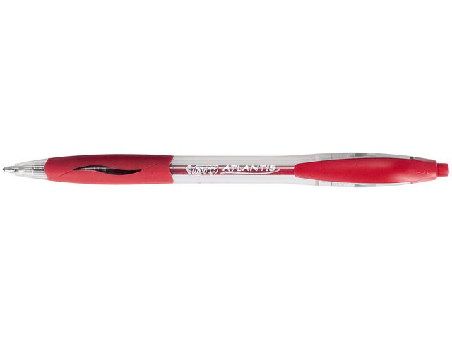 Produktbeskrivning:Kulspetspennan BIC® Atlantis? har EasyGlide-bläck som gör det behagligt att skriva. Kulspetspennan BIC® Atlantis? passar utmärkt för dagligt skrivande. Med det bekväma mjuka gummigreppet blir du stadig på handen och kan skriva utan att pennan glider ur händerna, och med pennans EasyGlide-bläck blir skriften tydlig och jämn. Pennans 1mm spets ger jämna linjer, så att dina föreläsnings- eller mötesanteckningar blir klara och tydliga. Fickklämman på pennhuven är praktisk. Du kan ha pennan på dig hela tiden genom att fästa den på bland annat skjortficka, anteckningsblock och mappar. - Klickmekanism - Spetsbredd: 1 mm - Linjebredd: 0,4 mm - Fickklämma för enkel bärbarhet - Skrivfärg: Röd - Färg pennkropp: Transparent/Röd