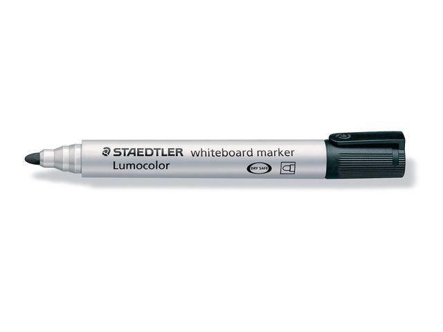 Produktbeskrivning:Med den här Whiteboardpennan går det att skriva på många ytor, till exempel glas, porslin och OH-film. STAEDTLER Lumocolor® Whiteboard Marker har en spets som ger cirka 2 mm linjebredd och den passar utmärkt när du vill ha precision och noggrannhet. Den innehåller ett bläck som kan torkas bort från ytor utan att lämna spår. Bläcket torkar inom några sekunder, vilket gör den här märkpennan perfekt för vänsterhänta. Bläcket är dessutom xylen- och toluenfritt, vilket innebär att bläcket luktar mindre. Märkpennan levereras komplett med kork och fickklämma så att den är lätt att alltid ha till hands. Den kan lämnas utan kork i flera dagar utan att bläcket torkar ut. - Icke permanent bläck - Med huv - Rund spets - Linjebredd: 2 mm - Textfärg: Svart - Färg pennkropp: Vit