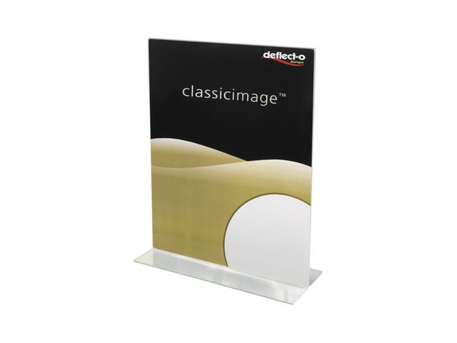 Akrylställ/Menyställ A3 med T-fot. Ett akrylställ som visar menyer, prisuppgifter, reklambudskap, fotografier eller annat på ett tydligt och snyggt sätt, dessutom är det läsbart från båda håll så därför passar den extra bra på t ex. bord eller andra ytor där dina kunder kan se informationen från båda håll. - Storlek: A3 med T fot - Material: Glasklar polystyren - Stående