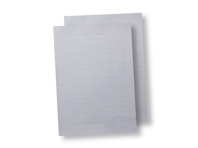Perforerade instick för rubrikhållare till hänhmappar. Ett A4-ark med 80 st etiketter. Etikettens mått: 4,9 x 1,3 cm.