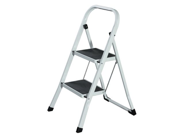 En 2-stegs trappstege med brett steg (380x260mm) samt räcke. Anti-slip gummifötter så att stegen står säkert och fast. Kan användas för kontor och hemmabruk. - 2 steg (380x260mm) - Anti-slip gummifötter - Mått (HxDxL): 550 x 460 x820 mm - Hopfällbar