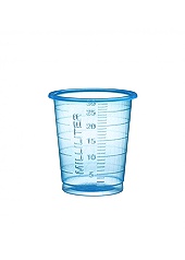 Graderad engångsbägare. Höjd 42 mm, diameter 35 mm. Tillverkade i Sverige.