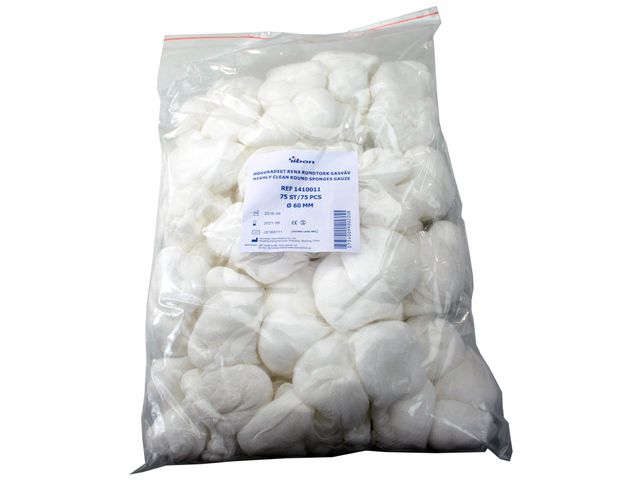 Produktbeskrivning:Rundtork gasväv - Höggradigt ren - Latexfritt - Elastisk ring: Material: Silikon - Färg: Vit - Avd fp: Återförslutningsbar plastpåse - Autoklaverbar: EO alternativt ånga 135 °C - CE-märkning: Klass 1 enl MDD - Tillverkning: Kina - Certifiering: ISO 9001:2008 & ISO 13485:2012 - Lagring: 5 år från tillverkningsdatum, på torr och sval plats utan direkt solljus eller - påverkan från värmekälla - 100% blekt bomull - 17 trådar - Varp: 104 ± 4 - Veft: 72 ± 4