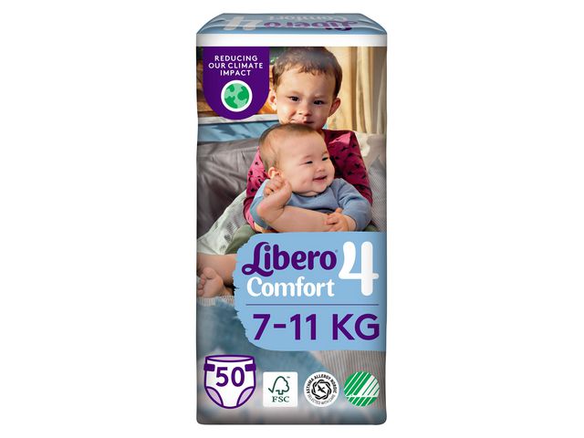 Produktbeskrivning:Libero Comfort är bekväma och läckagesäkra blöjor som är enkla att byta. De är både Svanenmärkta, FSC-certifierade samt testade och rekommenderade av Asthma Allergy Nordic. En blöja som lever upp till höga krav samtidigt som den ger ett pålitligt skydd. Libero Comfort är en säker blöja med en skön passform. När de små blir mer aktiva och väger mellan 7-11 kg ger Libero Comfort storlek 4 ett bekvämt skydd. De sköna materialen andas och anpassar sig efter den lilla kroppen för en riktigt skön upplevelse i alla lägen. En otroligt absorberande kärna och mjuka läckagebarriärerna runt barnets ben sätter stopp för läckage under dagens lek och nattens drömmar. Den smidiga kardborreknäppningen ger en pålitlig passform och härlig rörelsefrihet. - Modell: Comfort - Blöja med skön passform - Kardborreknäppning - Storlek: 4 - För 7-11 kg - Svanen: Licensnummer 30230023