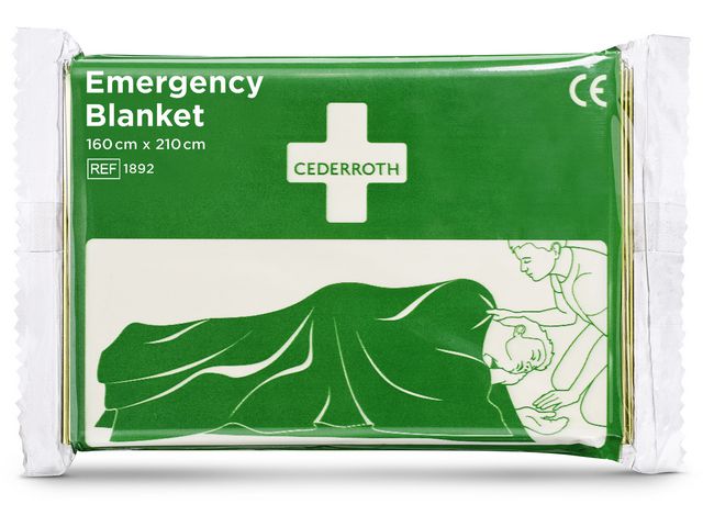 Räddningsfilt med värmereflekterande aluminiumsida som skyddar mot nedkylning.