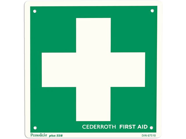 Efterlysande skyltar i hårdplast som lyser i mörkret efter uppladdning i dagsljus eller annan ljuskälla. Dubbelsidig för montering som flaggskylt eller hängande från taket. Uppfyller DIN 67510. Mått: 20 x 20 cm