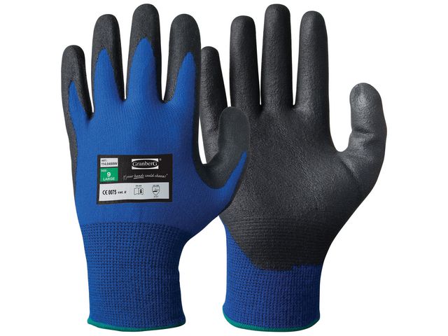 Montagehandskar Granberg lätt fodrade. Montagehandskar av nylon med beläggning av nitrilskum i innerhanden och borstad akryl på insidan för isolering mot kyla. God fingerkänsla och slitstyrka. Den perfekta värmande handsken för arbete höst/vår utomhus eller i svala miljöer inomhus.