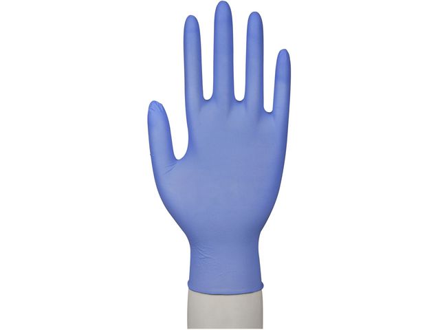 Produktbeskrivning:Elastisk undersökningshandske som formar sig efter handen när den används. Puderfria nitrilhandskar som kan användas för en mängd olika uppgifter som rengöring, vård, livsmedelshantering, laborationer, läkemedelshantering, cytostatika och hormonkrämer. Innehåller inga latexproteiner och är därför säkra att använda vid latexallergi. - Latexfri, texturerade finger, medium grip, rullkant - Längd/djup: 240mm - Bredd: 75mm - Tjocklek: 0,07+/- 0,02mm - Färg: Blå - Märkningar: CE, Livsmedelsgodkänd, CAT III, MD - CE-kategori: CAT III - CE-klass: Klass I - Produkt- eller teststandarder: AQL 1.0, EN 374-1:2016 Type B KPT, EN 374-5:2016 VIRUS, EN 420, EN 421:2010 Radioactive Contamination, EN 455 - Direktiv, förordningar och lagstiftning: MDR (EU) 2017/745, 425/2016/EU, 1935/2004 / EU, BEK 681 25.05.2020, 2023/2006/EC - Tekniska ingredienser: Nitrile NBR, Titanium Dioxide, Zinc oxide, Sulfur, ZDBC, Ammonium, Antioxidant, Calcium - stearate, Calcium Nitrate, Chlorine - Förvaras torrt, rent och i rumstemperatur. - Bör sorteras som plastavfall. Vid risk för kontaminering ska produkten kasseras som kliniskt avfall. - På grund av produktens sammansättning är utgångsdatum baserat på produktionsdatum: 5 år