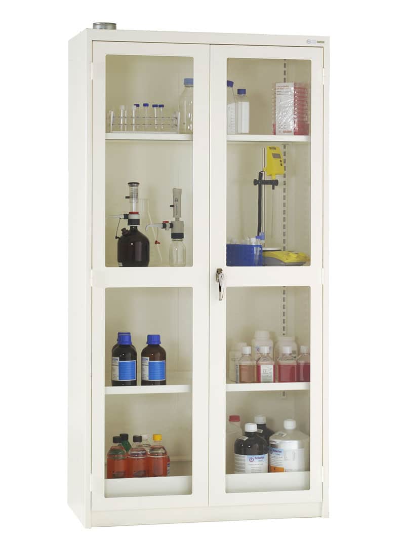 Helsvetsat Miljöskåp med plåtdörrar eller dörrar med härdat glas. MF4M är ej isolerat och är inte avsett för att förvara brandfarlig vara.