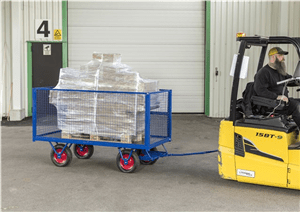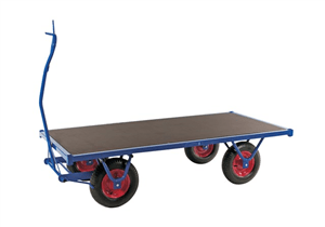 Flakvagn i mycket kraftig konstruktion. Med hjälp av handtaget så bromsar man enkelt vagnen, flera olika tillbehör kan erbjudas. Finns som standard i 5 modeller.