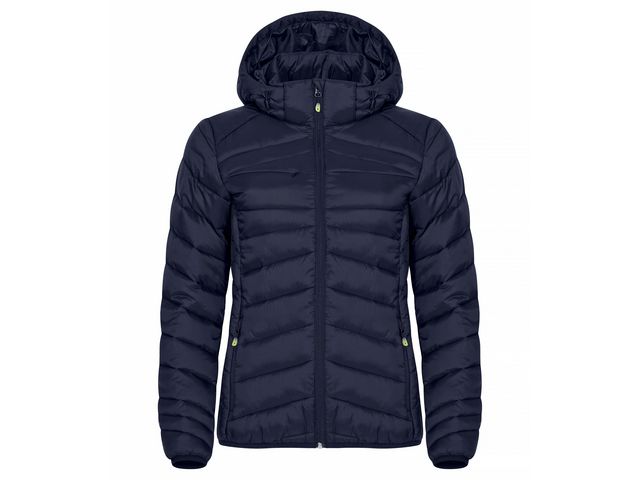 Produktbeskrivning:Damjacka utrustad med färgade zippullers, hörlurslösning och dragkedja. En varm och lätt jacka med dunliknande vaddering. Tillverkad av 100% återvunnen polyamid. Avtagbar huva, tre ytterfickor med dragkedjor och två innerfickor. Elastiskt avslut i nederkant samt ärmar. - Material: skal: 100% polyamid, vaddering och foder: 100% polyester - Storlekar: XS-4XL - Passform: dam - Färg: marinblå - Tvätt: 40° C