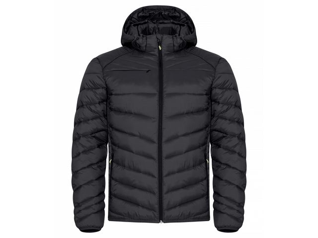 Utrustad med färgade zippullers, hörlurslösning och dragkedja. En varm och lätt jacka med dunliknande vaddering. Tillverkad av 100% återvunnen polyamid. Avtagbar huva, tre ytterfickor med dragkedjor och två innerfickor. Elastiskt avslut i nederkant samt ärmar. - Material: skal: 100% polyamid, vaddering och foder: 100% polyester - Storlekar: XS-4XL - Passform: herr - Färg: svart - Tvätt: 40° C