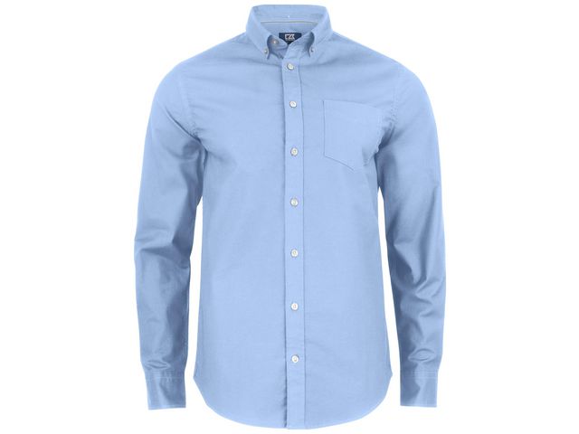 Oavsett om du klär upp dig för ett möte eller klär ner för en avslappnad helg, kommer denna skjorta snabbt bli en favorit i garderoben. Hansville är en modern nytolkning av den klassiska oxfordskjortan med extra stretch för en följsam passform. Tyget är tvättbehandlat för att ge en mjuk känsla mot huden, vilket gör skjortan extra bekväm att bära. Den är utrustad med en stilren button-down-krage, en praktisk bröstficka och en rundad skärning nedtill för en elegant silhuett. - Material: 97% bomull, 3% elastan - Vikt: 170 g/m2 - Storlekar: S-4XL - Passform: herr - Färg: ljusblå - Skötselråd: maskintvätt, 40° C