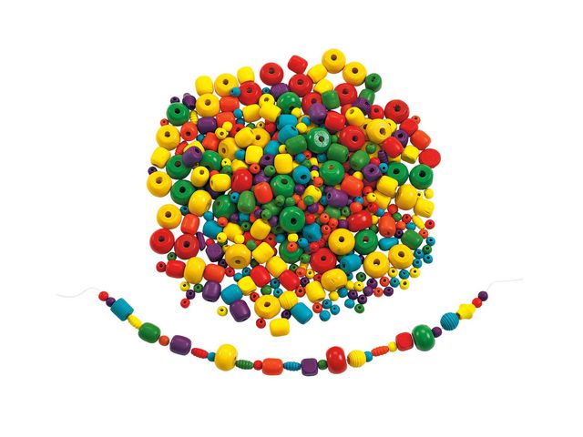 Kvalitets träpärlor i ljusa färger med olika storlekar och former. Ger barn olika öppna möjligheter och material att uttrycka sig kreativt genom två- och tredimensionell konst. Använd dem för att göra halsband, armband och andra gör-det-själv hantverk. Antal: ca 620 pärlor. Mått: 6 mm till 2 cm i diameter med hål 3 till 6 mm. Material: trä PVC-fri