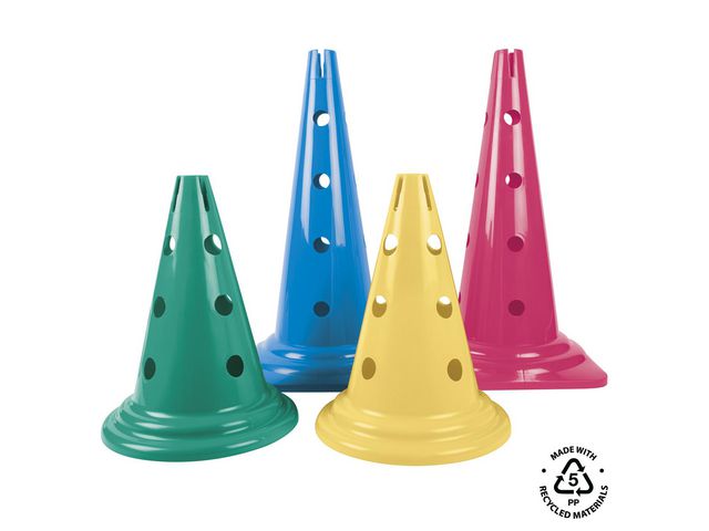 Produktbeskrivning:Optimera tävling och lek med koner! Med dess mångsidighet är den redo att följa med på alla äventyr. Oavsett om du dribblar på fotbollsplanen, hoppar över den på löparbana eller skapar din egen hinderbana är konan redo. Så låt fantasin flöda i lek och sport! Passar med pinnar 75000244 och platta ringar. - Mått: 50 cm med 16 hål - Material: 25% återvunnen polypropen och 75% konventionel polypropen