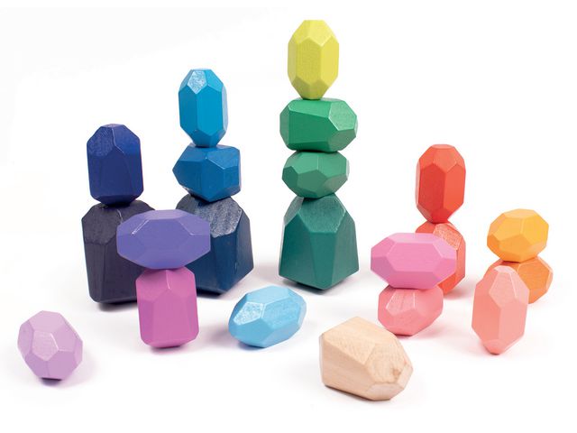 21 st kantiga oval-formade trästenar i olika storlekar och färger som inbjuder till öppen lek. Sortera och lägg dem på rad, rulla eller stapla dem på varandra och bygg torn. Främjar motorik, färglära och kreativitet. - Setet innehåller 4 olika storlekar 3,5-5cm, i regnbågsfärger - FSC-trä