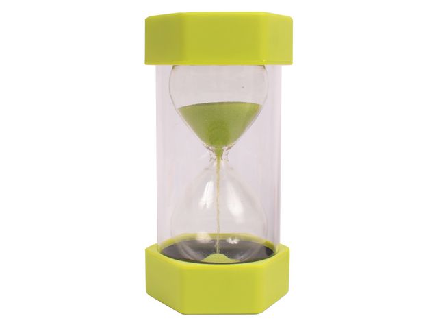 Stort timglas 1 min, grön. Perfekt verktyg för att konkritisera tiden och tidsbegreppet för barn. Genom att erbjuda en visuell indikation av den återstående tiden hjälper det till att skapa en djupare tidsuppfattning. Lätthanterliga och smidiga att använda i inlärningsmiljöer. Bra för experiment, tidtagnining, spel och lek. - Mått: 16cm