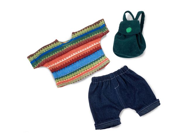 Produktbeskrivning:Välgjorda kläder för Rubens Cutie-dockor 32 cm. I setet ingår: En randig, flerfärgad tröja - Ett par åtsittande jeans - En grön ryggsäck med kardborreknäppning vid väskans öppning - Alla Rubens Barns docktillbehör och dockkläder är designade i Sverige. De är designade för att ge barn chansen att utöva kreativitet, omtanke och empati genom rollek. - Tvättråd: handtvätt - Rubens Barn dockkläder 32cm