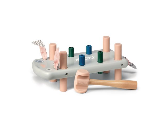 Produktbeskrivning:Klassisk bultbräda som tränar barnets koordination och motorik Bultbrädan är en klassisk träleksak som både är rolig och tränar barnets koordination och motorik. Här i form av en söt, liten gris! De lekfulla färgerna och mixen av olika material ger ett mjukt intryck och låter barnet använda fler av sina sinnen i leken. Hur låter det när du hamrar ner spikarna? Bultbrädans ben är av mjuk plast vilket dämpar ljudnivån, gör att den står stabilt och inte lämnar märken på underlaget när barnet bankar. Även hammarens huvud är av mjuk plast för att dämpa ljudet och undvika märken. - Tillverkat av: Trä - Detaljer i: Linne tyg, TPE-E och PP - Alla plastdetaljer är ftalat- Bisfenol och PVC-fria - Mått: 230x100x100 mm - Lämplig från: 12 M+ - Bra för koordinations och motorik träning