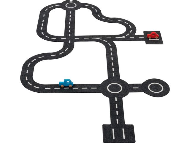 Produktbeskrivning:Det stora goki-vägbyggnadsspelet. Vägbyggnadsplanerare, nybörjarförare, vardagsrumsdesigners, trafikplanerare, bilentusiaster lyssna - med detta vägbyggnadsspel av slitstark filt kommer din leksaksdröm att bli verklighet: äntligen kunna designa städer och vägar fr itt. Alla kurvor och grenande element är tryckta på båda sidor. Det betyder till exempel att högersvängar blir vänstersvängar. Detta skapar ytterligare och olika gatulayouts. Filten kan beträdas; så att städa upp är inte helt nödvändigt ;-). Men det är främst för att underlätta lekbarheten. Två träbilar ingår. Men generellt: bord, stolar, fåtöljer blir tunnlar, alla befintliga leksaksbilar kan köra på vägen, hela leksaksförrådet kan integreras.Antal delar; 30Mått; ??Material; träPVC-frittRekomenderad ålder från 2 år