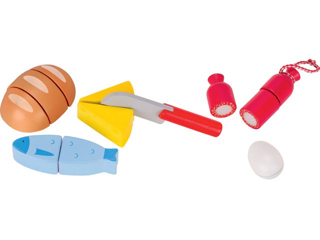 Barn älskar att hjälpa till att laga mat, men att hantera en kniv säkert är en färdighet som måste läras först. Vårt set med delikat esser sammanfogade med kardborrepunkter ger ett säkert och roligt sätt att öva på att skära.Antal delar; 5 delbara matvaror 1 kniv Mått; fisken 11 cmMaterial; träPVC-fritt Rekomenderad ålder från 3 år