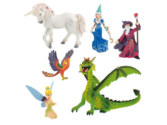 Sagofigurer för pedagogiska spel och lekar. Vackra, handmålade figurer från sagans värld i PVC-fritt material. T.ex. trollkarl, fe, enhörning och drake. - Rekommenderas från 3 år - Tillverkade av TPR - PVC-fri - 5 figurer - Måttexempel: Drake 110 mm - Kan användas i lekhus