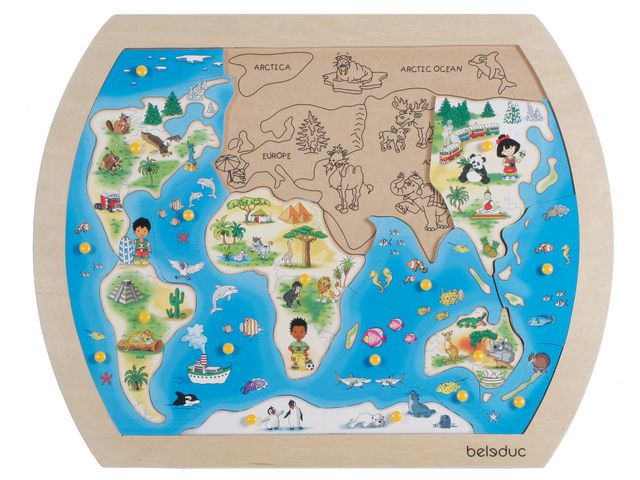 Produktbeskrivning:OBS! ARTIKEL PÅVERKAD AV CORONAUTBROTTET, OSÄKER LEVERANSTID. VÄLJ UR ÖVRIGT SORTIMENT UTIFRÅN AKTUELLT LAGERSALDO PÅ VÅR HEMSIDA. Introducera små barn till den färgglada världen de bor i med de här livfulla, inramade pusslen med handtag som gör bitarna enkla att flytta. De här inramade pusslen är tillverkade av hållbar, screentryckt plywood och klarar av intensiv användning. Bitarna har ett vredformat handtag, vilket gör det lätt för små händer att plocka upp dem. Barnen upptäcker olika delar av världen genom ett livfullt tema baserat på världskartan. Gör de här pusslen till en klassrumsaktivitet som ett roligt och interaktivt hjälpmedel i undervisningen för små barn eller utöka leksakslådan med dem för timtal av kreativ lek. - Inramat pussel - Tema baserat på världskartan - Innovativ design som har vredformade handtag - Antal delar: 21 - Material: Screentryckt plywood - Rammått: 340 x 420 mm - Rekommenderad åldersgrupp: Från 3 år
