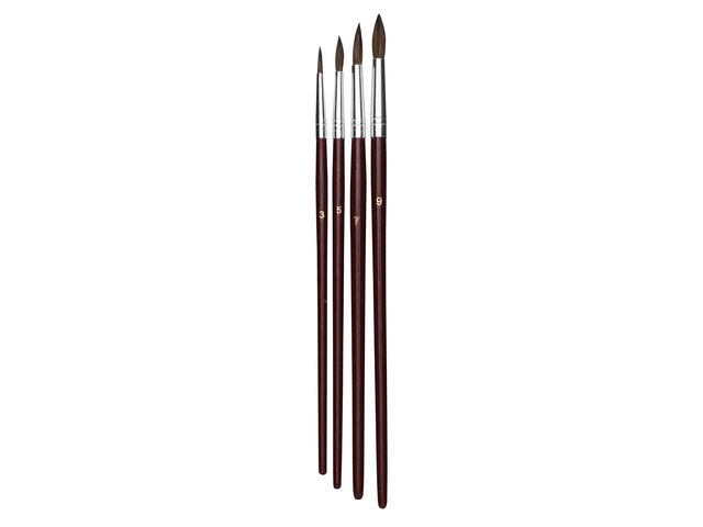 Låt kreaktiviteten flöda med hjälp av dessa akvarellpenslar. Borst av mjukt ponnyhår. Håller mycket vatten. Passar till readymix, färgblock, akvarellfärg mm. - Förpackning om 1 st nr 3, 5, 7 och 9 (siffrorna anger penselbredden i mm).