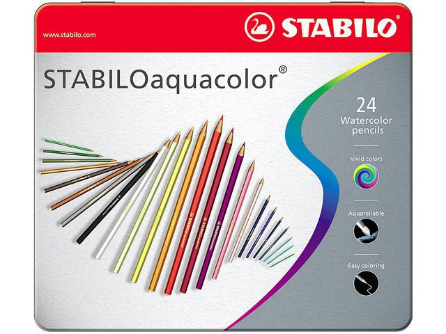 Produktbeskrivning:Stabilo Aquacolor®-färgpennsetet innehåller akvarellpennor för blivande konstnärer och skolbarn och används för att göra teckningar med specialeffekter. Dessa högkvalitativa vattenfärgpennor har djupa och mättade färger som kompletterar din vattenfärglåda. Stabilo Aquacolor®-pennorna finns i olika färger som gör att du kan skapa fantastiska avancerade teckningar. Du kan också experimentera med nya färgläggningstekniker genom att använda vatten och pensel. Varje penna innehåller ett stift av hög kvalitet som är 2,8 mm tjockt, och den sexkantiga formen innebär att pennorna inte rullar iväg när du lägger ifrån dig dem på bordet. Med de här pennorna kan amatörkonstnärer, konststudenter och skolbarn njuta av många timmars färgglädje. - Färgpennor - Experimentera med olika färgläggningstekniker - Idealiska för blivande konstnärer - Kompletterar dina vattenfärger - Kvalitetsstift som ger djupa, mättade färger - Sexkantig form - Rullar inte av bordet - Levereras i en låda av metall - Stiftets diameter: 2,8 mm - Färg på pennkroppen: Olika färger - Stiftfärg: Olika färger