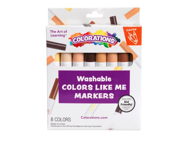 Fiberpenna med 8 olika hudtoner. Perfekta för mångfaldsprojekt. Alla Colorations®-produkter är certifierade enligt ASTM-D4236 för icke-toxicitet. Bläcket kan tvättas från de flesta ytor. Fiberpennan är lätt att greppa för små händer. Antal: 8st Mått: längd 13,5cm bredd 1,5cm diam. PVC-fri
