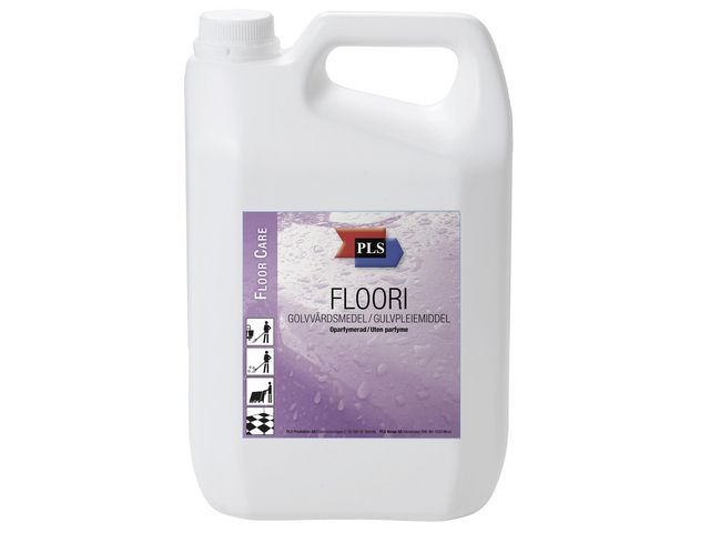 Produktbeskrivning:För lättare rengöring och underhåll på alla typer av golv såsom linoleum, plast och sten. Effektiv rengörings- och underhållsprodukt med vax och tensider för nya golv och gamla grund-, polish- behandlade ytor. Floori har vattenavvisande egenskaper och efterlämnar en blank smutsavvisande yta. Doseringsanvisningar: Daglig rengöring 5 ml till 10 liter vatten Moppimpregnering 5 ml till 10 liter vatten i tvättmaskin - pH-värde: 9 - Lukt: oparfymerad - Utseende: gulaktig vätska