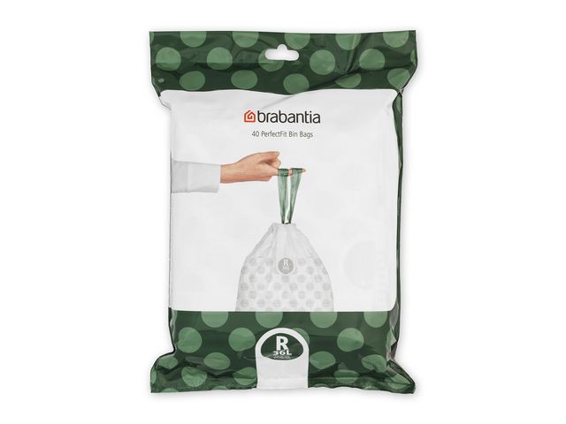 Produktbeskrivning:Brabantia PerfectFit avfallspåsar är perfekt skräddarsydda för att passa din Brabantia avfallshink och är gjorda för att göra livet enklare. Därför är de extra starka, kommer i ett bekvämt dispenserpack och har ett praktiskt knytband! Dra bara i det för att ta påsen ur avfallshinken och försegla den. Är du inte säker på vilken storlek du behöver? Kontrollera färgkoden på insidan av avfallshinkens lock.